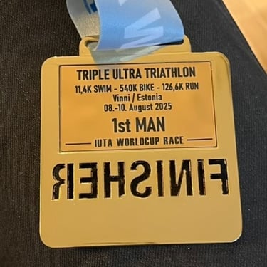 2025.08.08 "Triple Ultra Triathlon" cont. (Estija) 11,4km + 540km + 126,6km (42h.16min.) 1 vieta