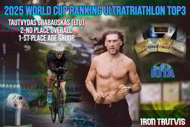 2025.08.08 "Triple Ultra Triathlon" cont., IUTA world cup (Estija): 11,4km swim + 540km bike + 126,6km run (42h.16min.) 1 vieta/place