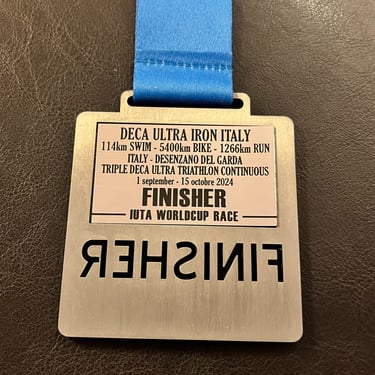 2024m. "Triple Deca cont. Ultra Triathlon" (Italija) 114km + 5400km + 1266km (926h.39min./38,5paros) 4 vieta